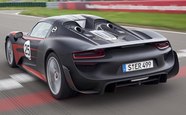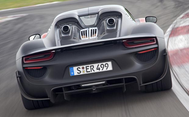 von 6: Porsche hat jetzt die Leistungswerte seines neuen Hybrid-Sportwagens 918 Spyder präzisiert: Als Hauptantriebsquelle dient ein aus dem Rennwagen RS Spyder abgeleiteter Achtzylinder, der 448 kW / 608 PS aus 4,6 Litern Hubraum mobilisiert und Drehzahlen bis zu 9.150 U/min erlaubt.