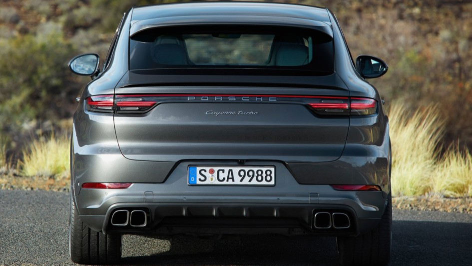von 11: Eine verbreiterte Hinterachse, das durchgehende Heckleuchtenband, die muskulöseren Kotflügelschultern und die beiden Heckspoiler sorgen für die nötige Würze, die den coupierten Cayenne nach Worten von Porsche-Chef Oliver Blume "progressiv, athletisch und emotional" wirken lassen.