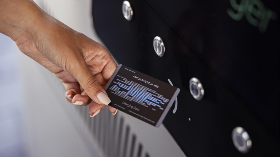 von 5: Das Fahrzeugkennzeichen kann komfortabel in der My Porsche App hinterlegt werden. Alternativ erhält der Kunde über die Porsche Charging Card oder einen QR Code aus der My Porsche App unkompliziert Zugang zum Standort sowie in die Lounge.