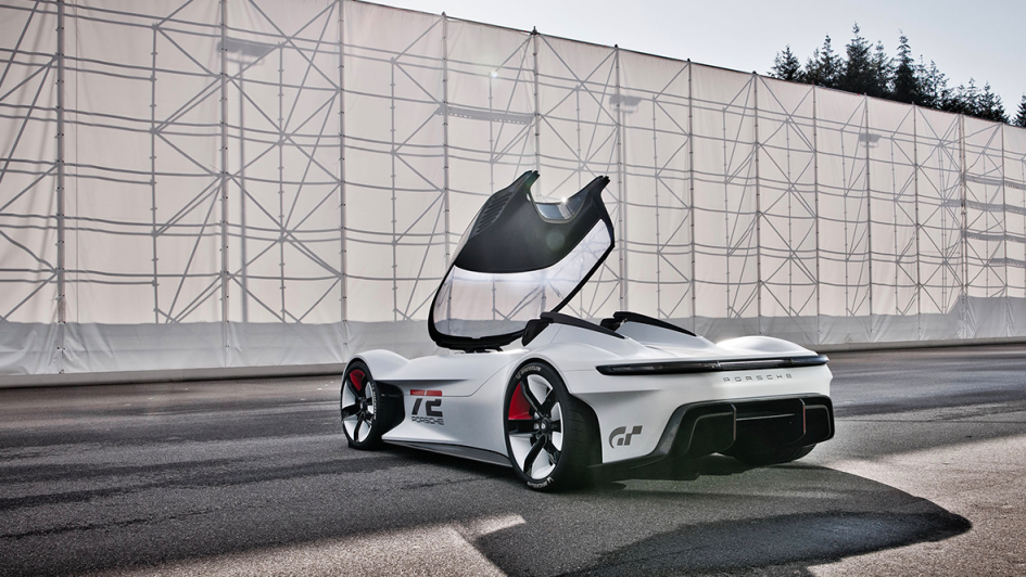 von 6: Die Elektro-Flunder zeichnet sich durch typische Porsche-Merkmale aus, zugleich bietet der Playstation-Renner aus Ausblick auf die Porsche-Zukunft.