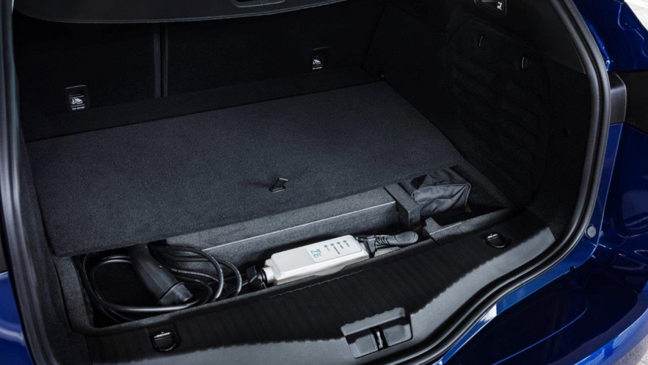 von 6: Durch den gut 100 Kilogramm schweren, 10 kW/h speichernden Akku schrumpft die Ladekapazität auf knapp 400 Liter. Ein zweites Fach im Kofferraum gibt es nicht mehr. Zudem erhöht sich das Gesamtgewicht auf rund 1,7 Tonnen.