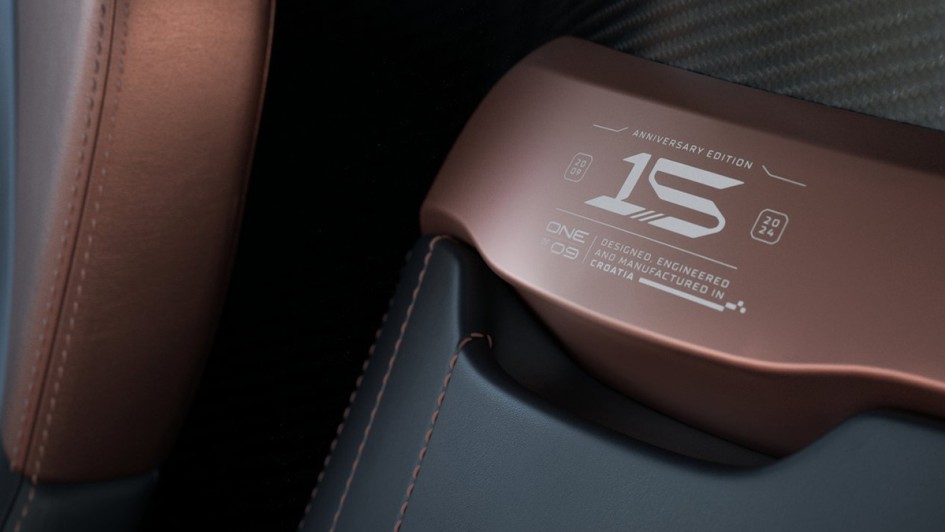 von 10: Demnach dürfte der 15th Anniversary über den 1.408 kW/1.914 PS und 2.360 Newtonmeter starken Elektroantrieb des Serien-Nevera verfügen, der 2023 zahlreiche Geschwindigkeitsrekorde aufstellte.