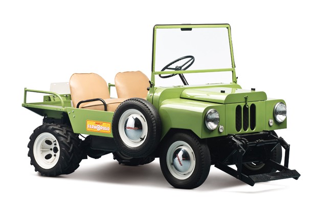 Auch für Offroad-Freunde hat die Kleinstwagen-Sammlung etwas zu bieten: Der Crosley Farm-O-Road Prototype wurde 1949 im US-amerikanischen Ohio gebaut. 15.000 bis 22.500 Euro soll der Mikro-Geländewagen bringen. Von dem Farm-O-Road Prototyp wurden nur zwei Exemplare hergestellt, wobei der zweite Wagen verschollen ist. Der Erfinder Powel Crosley Jr. konstruierte den Farm-O-Road so, dass er zum Pflügen, Eggen, Grubbern und Rasenmähen umgerüstet werden konnte.