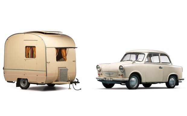 Auch Produkte aus der ehemaligen DDR haben es in das amerikanische Mikroauto-Museum geschafft. Dieser Trabant P50 von 1958 und das 1973er Wohnwagenmodell Weferlinger LC9-200 des Herstellers PGH Heimstolz werden als Paket verkauft. 19.000 bis 26.000 Euro sollen die beiden zusammen kosten. RM Auctions bezeichnet den Trabi von VEB Sachsenring Automobilwerke in Kombination mit dessen Anhänger als "Symbol für ostdeutsche Freizeitgestaltung".