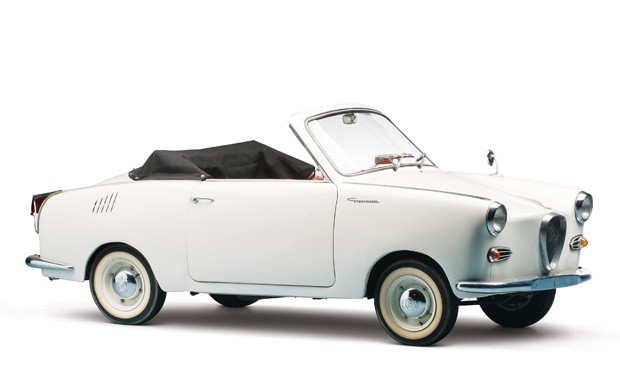 Von der Cabriovariante des Goggomobil TS-300 gibt es weltweit nur noch zwei Exemplare – sieben wurden von der Hans Glas GmbH aus dem bayerischen Dingolfing gebaut. Der offene Wagen hat leichte Gebrauchsspuren und soll für 26.000 bis 34.000 Euro unter den Hammer kommen.