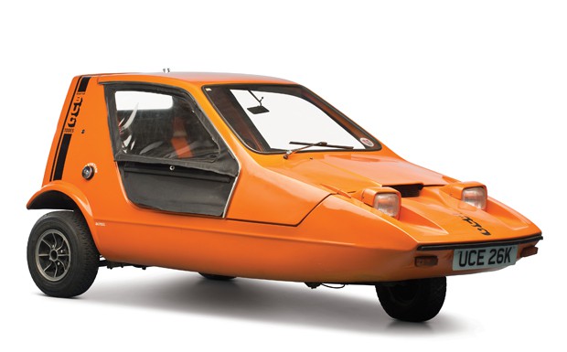 Reliant Cars aus dem englischen Tamworth baute 1972 diesen Bond Bug 700E. Der Wagen sollte in den frühen 1970er Jahren zum neuen Lebensgefühl der damals 18- bis 25-jährigen passen. Bei Reliant hatte man sich schon Ende der 1960er Jahre mit der Entwicklung eines kleinen Fahrzeugs beschäftigt. Als dann 1969 der englische Hersteller Bond Cars, der sich ebenfalls mit Kleinstfahrzeugen beschäftigte, von Reliant geschluckt wurde, konnte der Bond Bug kommen. Damals drehten sich die Menschen nach dem keilförmigen Flitzer reihenweise um. Das zu versteigernde Exemplar wurde in den 1990ern in England restauriert. Der erhoffte Erlös liegt zwischen 11.000 und 15.000 Euro.