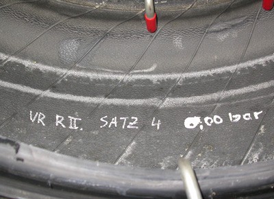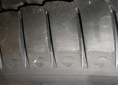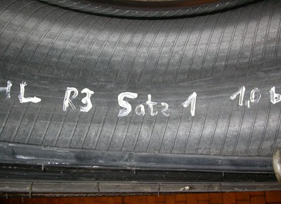 von 10: Ampel gelb. Vorsicht: Hier darf nur repariert werden, wenn keine Sägezahnbildung im Schulterbereich, keine Lackabriebsspuren am Felgenhorn und keine Wulsteingrabungen sichtbar sind. Bei diesem Exemplar sind deutlich helle Streifen in der Walkzone erkennbar.