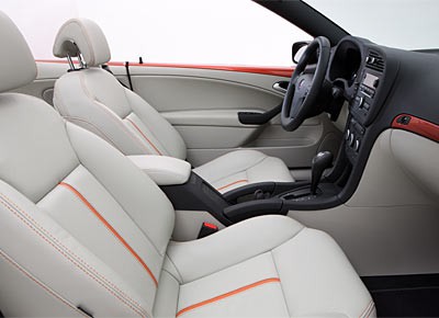 von 5: Saab bietet orangefarbenes Dekor an den Sport-Ledersitzen und am Handschuhfach sowie ...