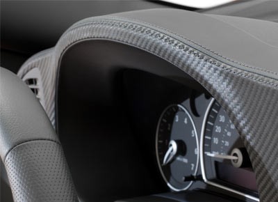 von 5: ... Karbonfaser-Optik und Lederbezüge an der Instrumententafel, der Handbremse, der Schaltkulisse und den Türgriffen.