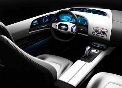 von 9: Das fahrerorientierte Cockpit beinhaltet eine Instrumententafel mit eisblauen 3-D-Grafiken, die aus dem oberen Türrahmen fließt und sich um den Fahrer wölbt.