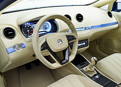 von 9: Im Innenraum präsentiert sich der Ibiza Concept IBZ rundum in hellem Leder und Wildleder - vom neuen Multifunktionslenkrad über die Armaturen bis zu den Sitzen
