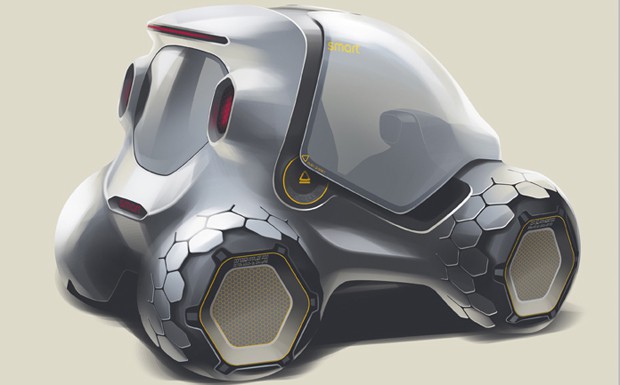 Zum Einparken kann der flexible Smart dank sechseckiger Radabdeckungen und mit Saugnäpfen versehenen Rädern auf den Kopf gestellt werden. Außerdem erinnert der deutsche Zwerg ein wenig an die Fähigkeiten des Comic-Helden Spider-Man: Der Wagen kann nicht nur fahren, sondern auch fliegen und senkrechte Wolkenkratzer-Wände hinaufkraxeln.