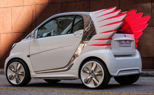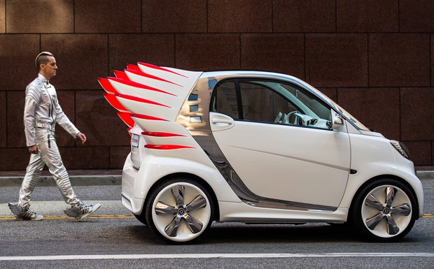 von 10: Der bekannte Modedesigner Jeremy Scott durfte sich des Elektro-Zweisitzers mit 55 kW / 75 PS annehmen und kreierte eine Smart aus einer anderen Welt.