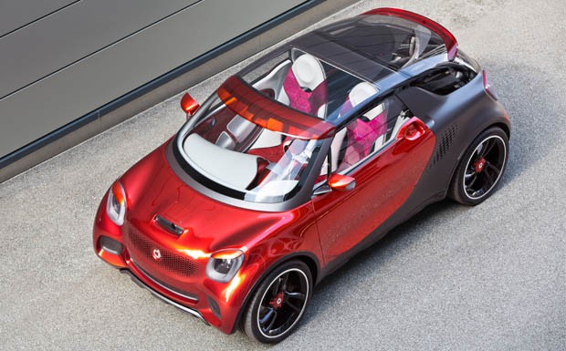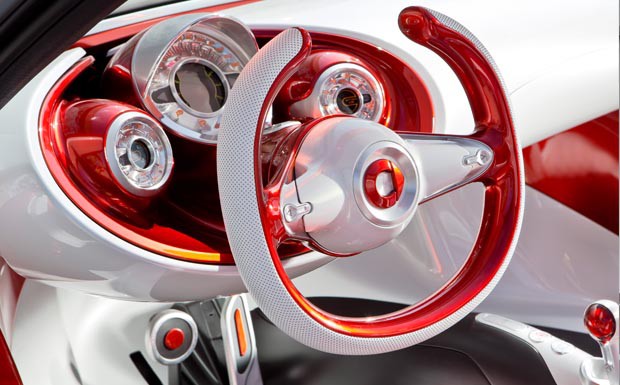 von 7: Die Ledersitze des Smart "Forstars" konstruierten die Schwaben mit durchbrochener Sitzlehne und Stoffbezug. Bei abgenommenem Bezug entsteht eine praktische Durchlademöglichkeit.
