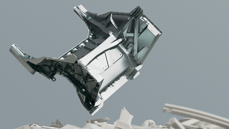 von 6: Wo bislang hundert Einzelteile zu einem Ganzen verschraubt, geschweißt und geklebt werden mussten, kommt das komplette Element nun binnen 140 Sekunden aus der Presse.