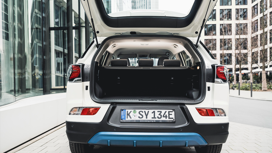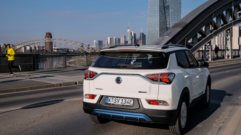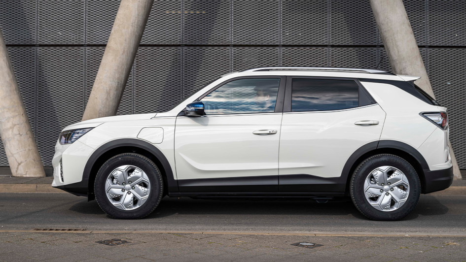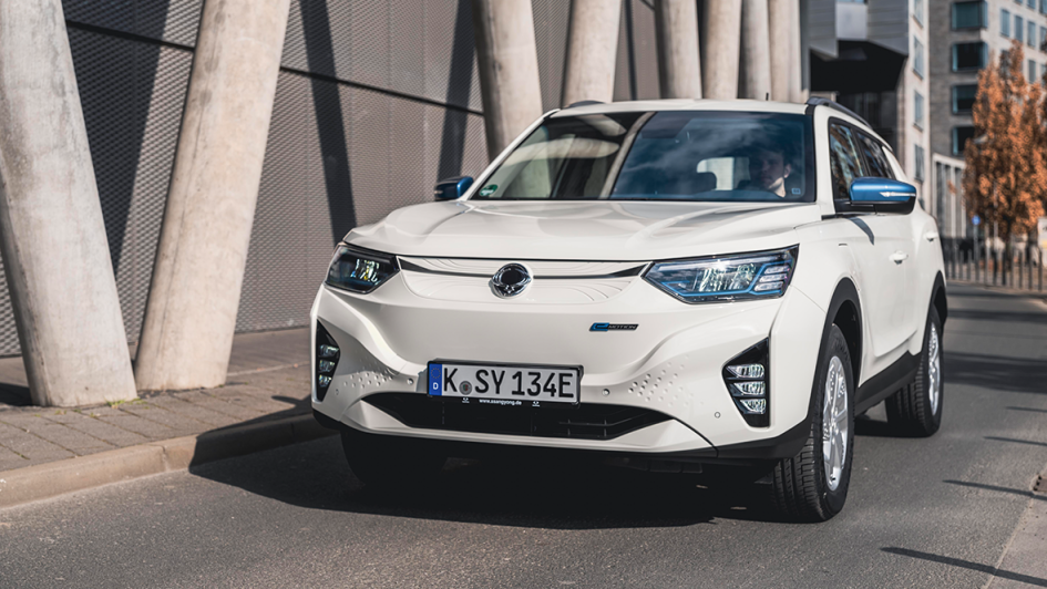 von 8: Der Korando e-Motion hat einen 140 kW / 190 PS starken Elektromotor und einen 61,5 kWh fassenden Akku an Bord, der eine Norm-Reichweite von 339 Kilometer ermöglichen soll.