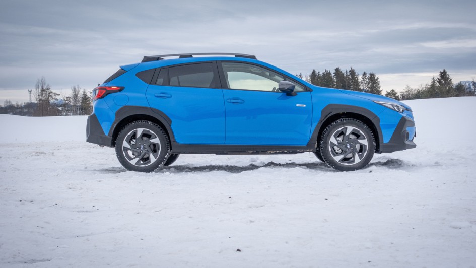 von 14: Der Subaru Crosstrek ist ein hochgelegter Subaru Impreza, auch der kommt 2024 komplett neu auf den Markt. Die Unterschiede: Der Crosstrek hat nicht nur ein sehr komfortables Fahrwerk, das 22 Zentimeter Bodenfreiheit generiert, er hat zusätzlich noch ein paar Kunststoffbeplankungen, die für den SUV-Look sorgen und vorn und hinten etwas Robustheit bei Querfeldein-Fahrten bringt.