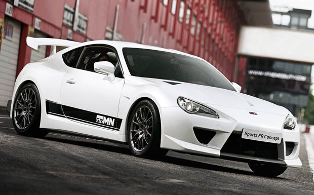 von 8: 18-Zoll-Räder - hinten im 265er Format - und eine Auspuffanlage mit vier Endrohren sollen den Motorsport-Anspruch des "GRMN Sports FR Concept" unterstreichen.