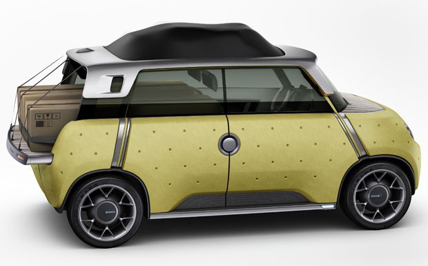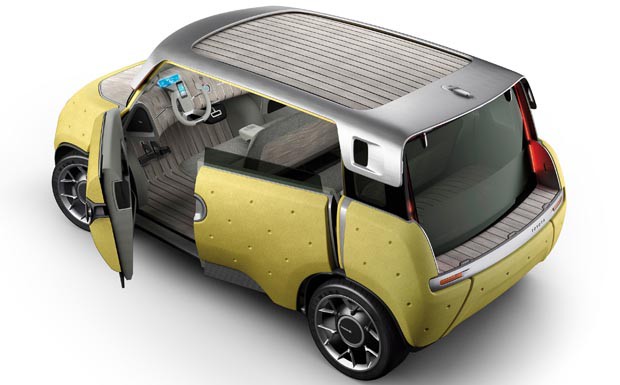von 12: Das kompakte, 3,44 Meter lange Auto mit der Bezeichnung ME.WE ("Ich und wir") besteht aus einem Aluminium-Gerippe, verkleidet mit geschäumtem Propylen und einem Boden aus Bambusholz.