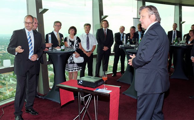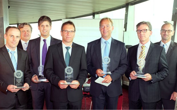 von 4: Geschäftsführer Bernhard Kerscher (r.) und Gerhard Müller, Mitglied der Geschäftsleitung, zeichneten 12 Betriebe aus, die besonders niedrige Mängelquoten bei der HU vorweisen konnten.