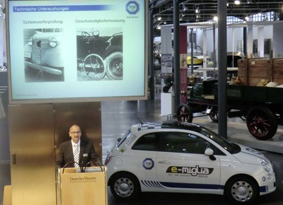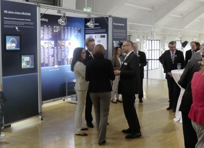 von 6: Gerhard Müller, Wolfgang Eichler (beide TÜV Süd Auto Service) und Horst Schneider (Vorstand TÜV Süd AG, hintere Reihe v.l.) eröffneten gemeinsam die neue Sonderausstellung im Deutschen Museum.