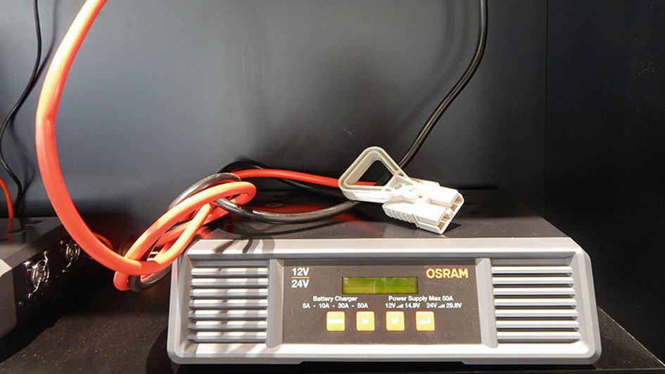 von 4: Osram Batterycharge Pro 100A: Das Osram Batterycharge Pro 100A ist ein professionelles Batterieladegerät, das für eine Vielzahl von Batterietypen für 12- und 24-Volt-Fahrzeuge geeignet ist. Ideal für den Einsatz, wenn verschiedene Fahrzeuge und sogar ganze Flotten gewartet werden müssen, insbesondere in professionellen Werkstätten oder Ausstellungsräumen. Durch die Auswahl verschiedener Batterietypen und Ladestufen kann der Benutzer die für die verschiedenen Batterietypen erforderliche spezifische Ladung einstellen. Das Batterycharge Pro 100A kann variable Ladeströme bis zu einem Maximum von 100 Ampere liefern. Dies ist sowohl für Blei-Säure-Batterien als auch für Lithium-Batterien und Start-Stopp-Batterien möglich. Variable Laderaten ermöglichen zudem ein flexibles Langsamoder Schnellladen, um den individuellen Anforderungen jedes Nutzers gerecht zu werden. Eine integrierte Testfunktion ermöglicht zusätzlich die Diagnose von Batterie und Lichtmaschine. Das Batterieladegerät mit integriertem LCD-Bildschirm durchläuft einen siebenstufigen Ladezyklus für Lithium-Batterien und einen neunstufigen Ladezyklus für alle anderen Batterien, um die Batterieleistung wiederherzustellen und zu optimieren sowie die Ladeerhaltung zu verbessern.