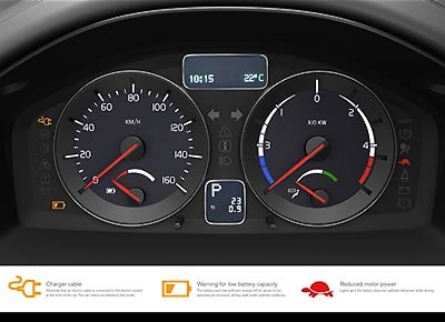 von 10: Die Höchstgeschwindigkeit des Volvo C30 mit voll geladener Batterie soll ca. 130 km/h betragen, die Beschleunigung von Null auf 100 km/h erfolgt in 10,5 Sekunden.