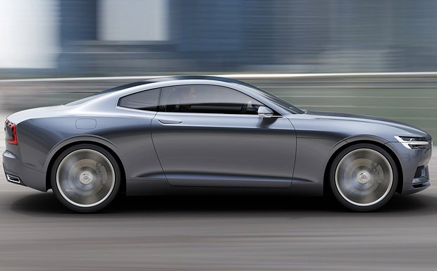 von 10: Der Zweitürer wendet den Blick aber nicht nur nach vorn, sondern auch zurück: So soll das lange Heck mit den angedeuteten Flossen an den Sportcoupé-Klassiker Volvo P1800 aus den 1960er-Jahren erinnern.