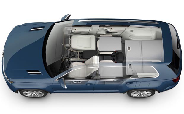 von 7: Konzeptionell soll der mit sechs Einzelsitzen ausgestattete CrossBlue eine Mischung aus SUV und Van darstellen, den ein hoher Fahrkomfort und eine gute Übersichtlichkeit auszeichnet.