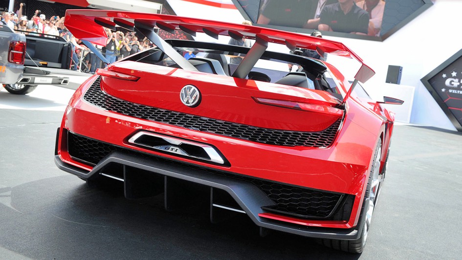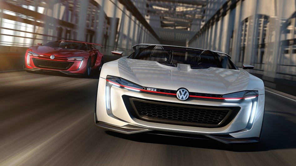 von 6: Die nun physisch präsentierte Studie basiert auf einem rein virtuellen Modell: einem Rennwagen, den VW speziell für das Videospiel "Gran Turismo 6" entwickelt hatte.