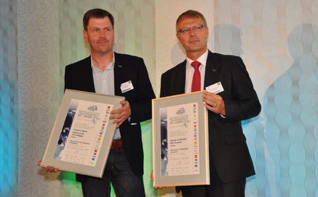 von 18: Platz 3, Kategorie 3: Jochen Batholomäus (l.), Geschäftsführer der Restemeier GmbH, war mit Sven Aßmann, einem viel versprechenden Azubi angereist. Obwohl der junge Mann durch seinen duales Studium und die Tätigkeit im Autohaus Restemeier bestens ausgelastet ist, hat er die Bewerbung für den Wettbewerb quasi im Alleingang gestemmt.