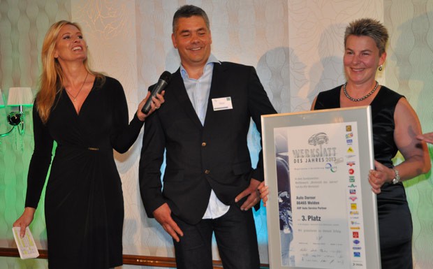 von 18: Plätz 4-6, Kategorie 3: In der Kategorie der großen Betriebe mit mehr als 13 Mitarbeitern war die Beteiligung in diesem Jahr vergleichsweise gering. Das galt allerdings nicht für die Qualität der Bewerber. Unter die ersten 6 kamen Auto Plus Kfz, Rennerod, (Auto Plus); Autohaus Kinnemann, Haldensleben, (Automeister); Krieger & Leipnitz GmbH, Meppen (Autofit)