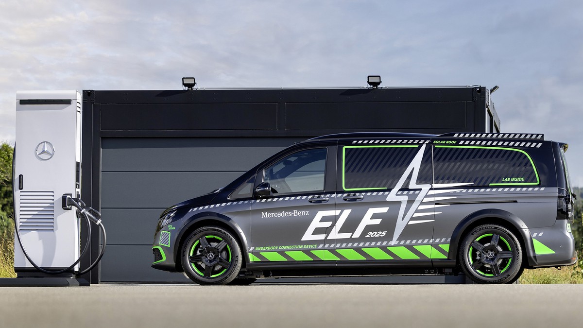 Das Ladeerlebnis entscheidet also auch maßgeblich mit über Anschaffung eines E-Fahrzeugs. Mit einem neuen Projekt versucht Mercedes Benz jetzt den Herausforderungen des Ladens auf die Spur zu kommen. Das rollende Experimental-Lade-Fahrzeug ELF soll Fahrzeug-Innovationen mit infrastrukturellen Konzepten zu einem möglichst optimalen Ladeerlebnis vereinen. Dafür hat Mercedes-Benz in einer umgebauten V-Klasse gleich fünf Möglichkeiten des Ladens eingebaut. ELF kann ultraschnelles Laden mit über 1000 Watt, dazu solares, bidirektionales, induktives und konduktives Laden.