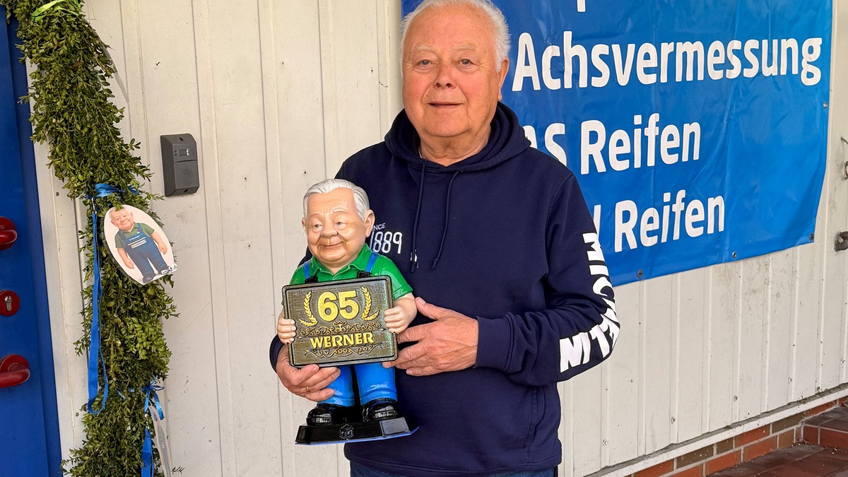 Auch vor Ort wird sein Einsatz hervorgehoben. Heiner Wienberg, Leiter der Euromaster-Servicefiliale in Westerstede, sagt: "Werner ist ein toller Kollege, sehr eifrig, immer hilfsbereit und auch bei unseren Kunden äußerst beliebt. Manchmal ist er sogar schneller als ein 18-Jähriger, dann müssen wir ihn bremsen. Wenn es nach mir geht, bleibt er uns noch viele Jahre erhalten."