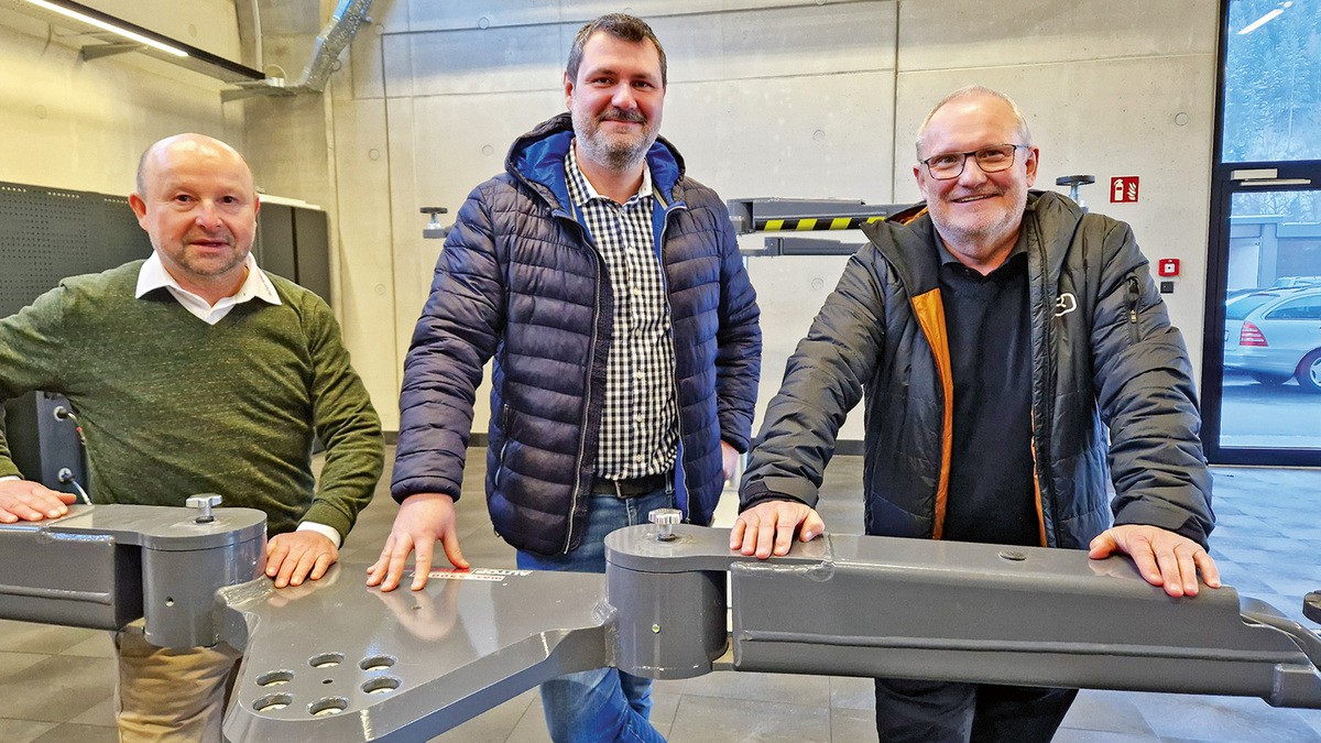 Hermann Hell, Vertriebsmitarbeiter beim Werkstattausrüster Autobedarf Karl Kastner in Tirol, betreut die Firma Goidinger und war auch bei der Ausstattung mit neuen Hebebühnen ein gefragter Mann. Er kennt sich aus und führt sachkundig durch die Halle, wo jetzt insgesamt vier 2-Stempel- Unterflur-Hebebühnen ihren Dienst tun - mit maximaler Traglast von 3,5 bzw. 5,5 Tonnen. Die Bühnen haben entsprechend der unterschiedlichen Fahrzeugabmessungen eine maximale Durchbreite von 230 cm und 260 cm. Alle Bühnen sind mit viel Zubehör ausgestattet und bieten flexibel alle denkbaren Optionen, wie es gerade für den jeweiligen Arbeitsplatz benötigt wird. In einer Werkstatt, wo vornehmlich E-Fahrzeuge repariert werden sollen, gibt es auch besondere Anforderungen an die Hebetechnik - denn wenn es darum geht, die Batterie auszutauschen, muss vor allem der Unterboden möglichst frei zugänglich sein.