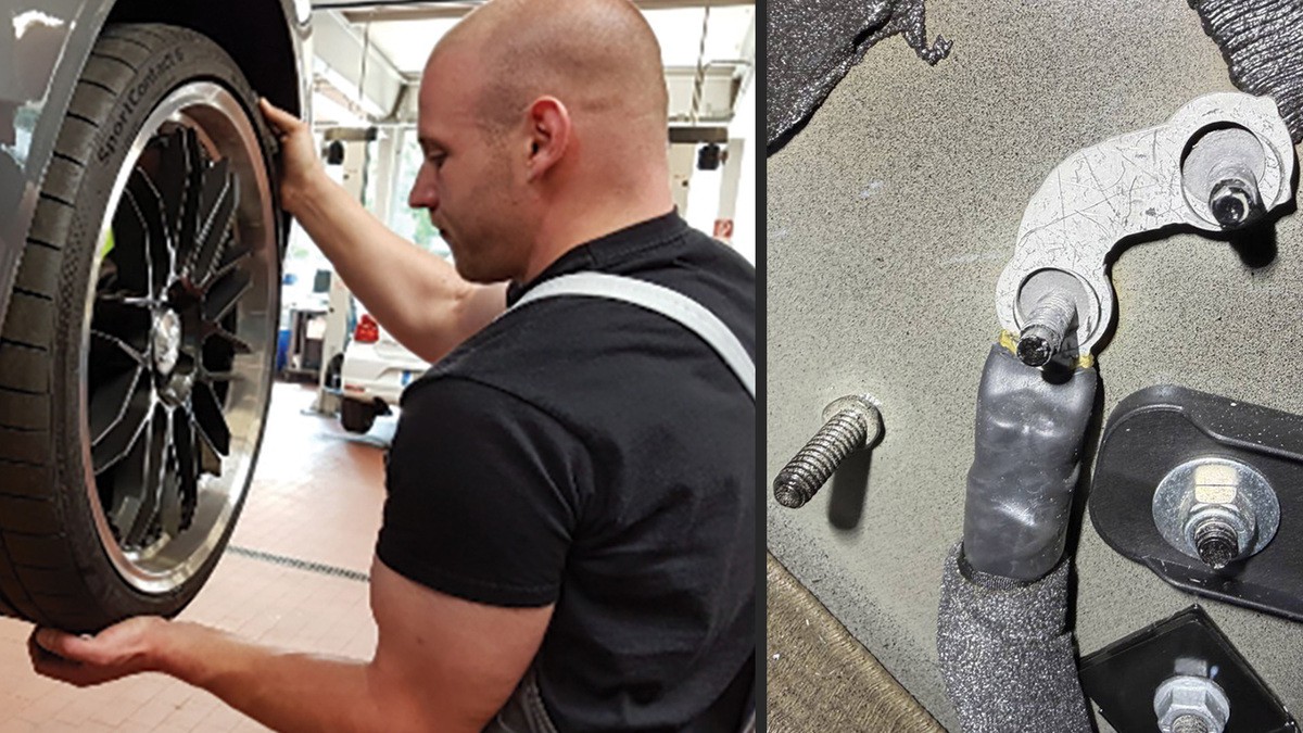 Mit diesem Tipp folgt Andre Korte der Spur und überprüft gezielt die Masseverbindungen im hinteren Fahrzeugbereich. Dabei stößt er auf den eigentlichen Fehler: Der Massebolzen, an dem das Batteriemassekabel am Heckblech befestigt ist, weist einen erhöhten Übergangswiderstand zwischen Bolzen und dem Aluminiumblech auf. Dadurch bricht die Spannung zusammen und das gesamte Bordnetz wird instabil.